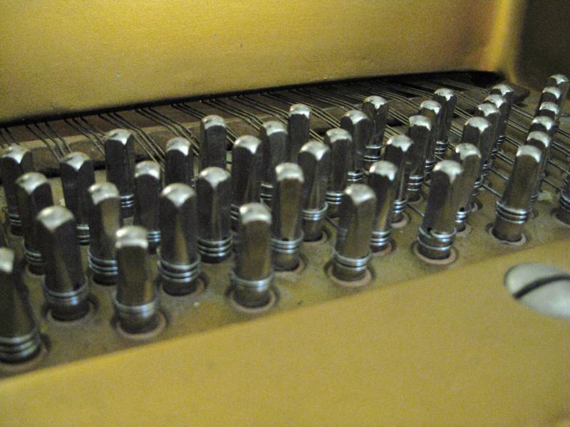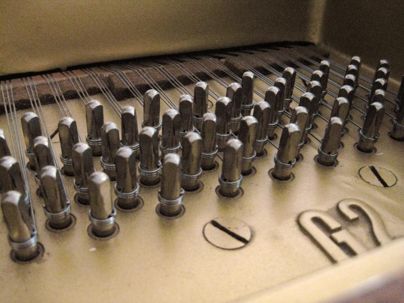 Anyone who plays the guitar or violin knows the improvement in tone that can be realized after the instrument has been restrung. Due to the expense, few pianists understand how important it is to restring a piano from time to time. The improvement in tone can be extraordinary. The photos to the left show the difference between fine craftsmanship and shoddy workmanship in a restringing job.